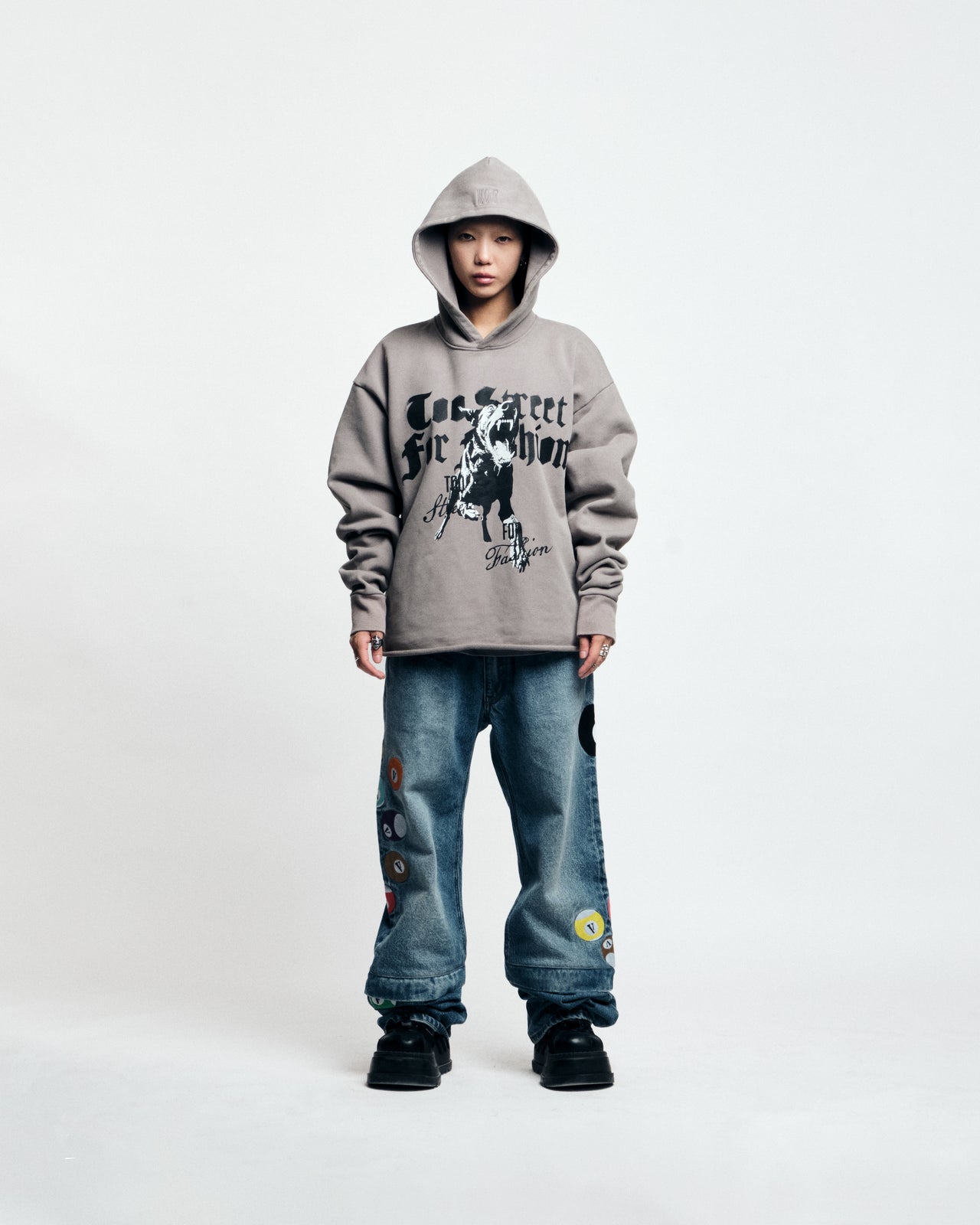 - Stringless oversized embroidered insignia hood